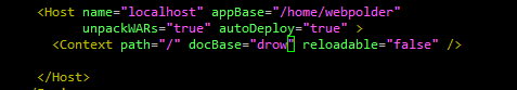 host안의 appBase와 Context의 docBase의 조합으로 "/home/webpolder/drow"경로에 웹 파일을 넣고 싶을때 이렇게 작성한다.