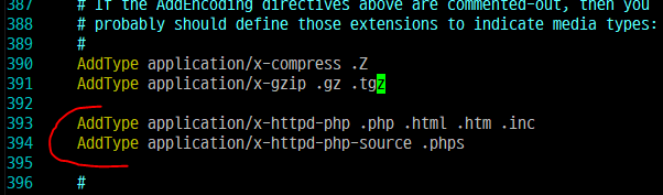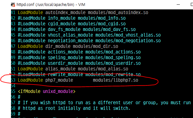 그리고 apache/httpd.conf 파일에서 php모듈 추가가 되었는지도 확인하자하자.