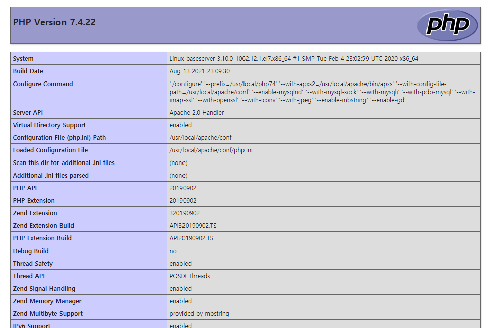 설치할 버전은 php 7.4.22 버전이다.(현재 최신버전)