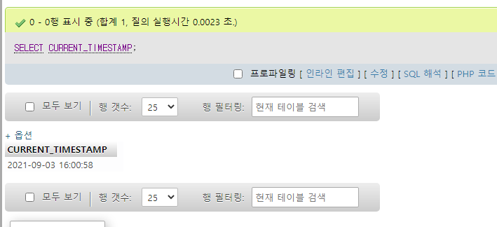 기본적으로 CURRENT_TIMESTAMP 를 이용하여 시간 출력 가능하다.