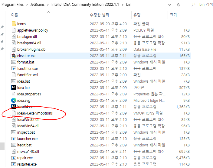 IntelliJ 설치 폴더에 idea64.exe.vmoptions 라는 옵션파일을 열어 제일 아래 줄에