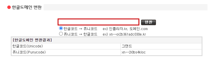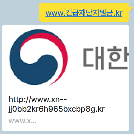 (예시, www.긴급재난지원금.kr -> www.xn--jj0bb2kr6h965bxcbp8g.kr)