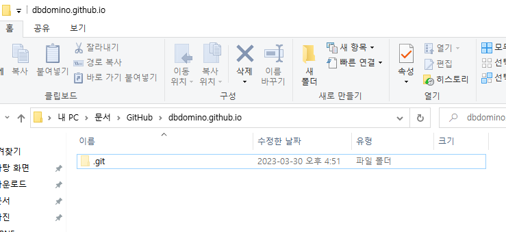 이제 웹페이지로 사용할 git repository에 들어가 안의 파일을 삭제하자. (.git 폴더는 안 지워도됨)