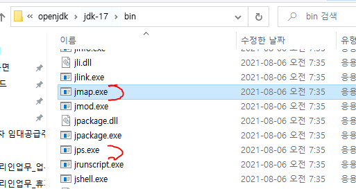 실제로 내가 사용하는 openJDK 17 버전 기준으로 jmap과 jps가 존재한다.