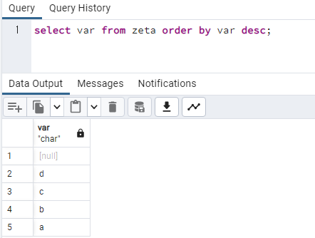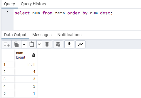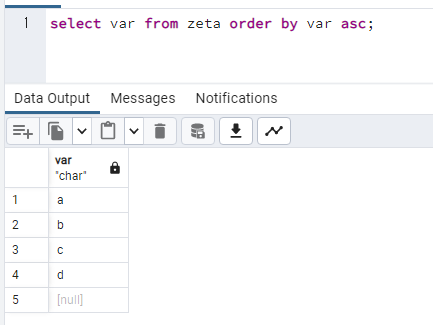 postgre에선 문자, 숫자 모두 null을 가장 큰 값으로 인식