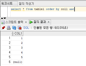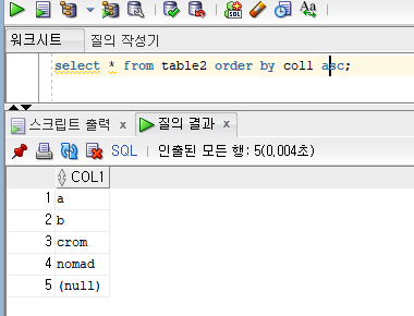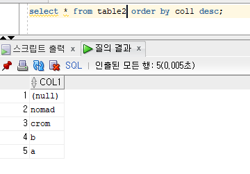 오라클db는 문자, 숫자 모두 null을 가장 큰 값으로 인식