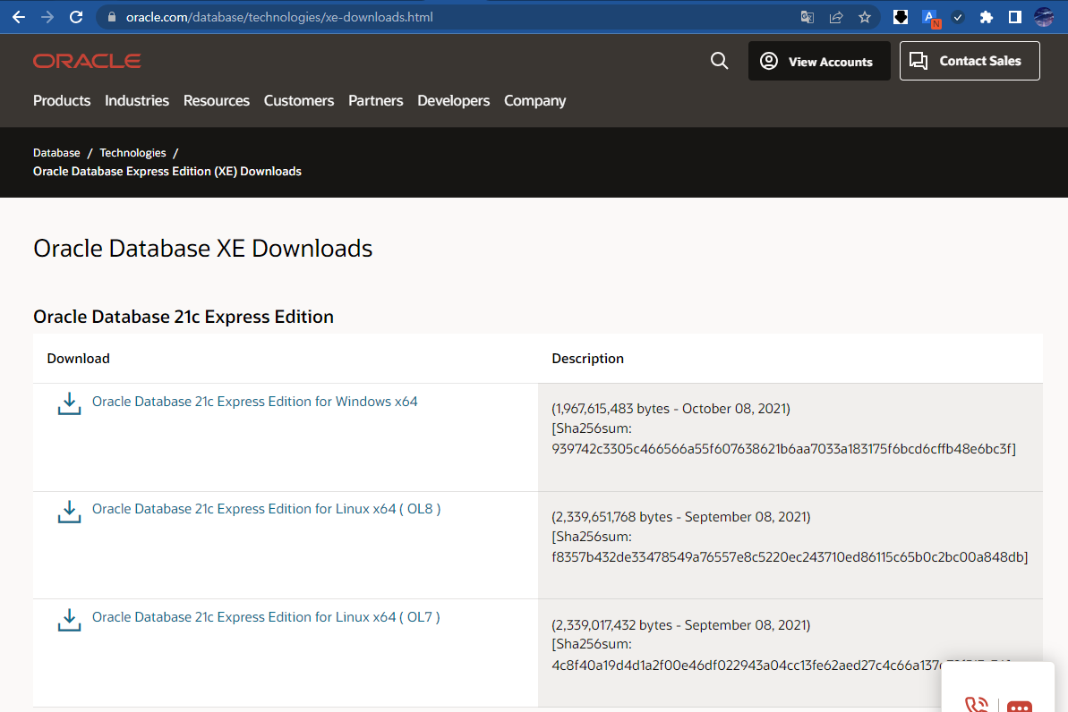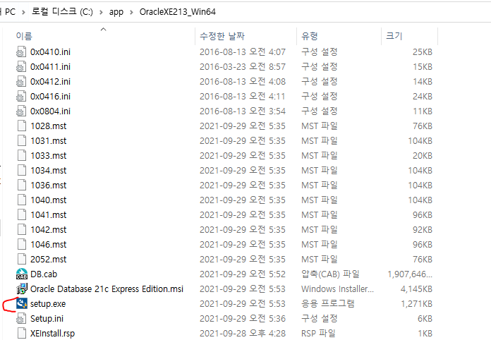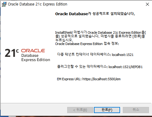 3. Oracle Database 21c Express Edition for Windows x64 설치하기