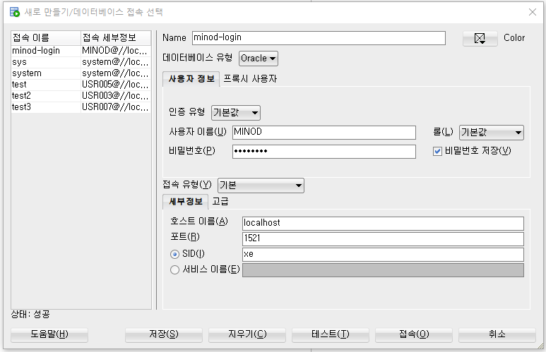 sql developer에서 접속해 테이블을 추가하거나 조회하는게 가능합니다.