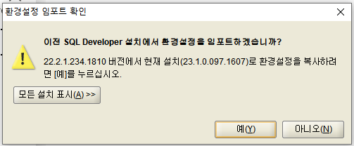 실행해보면 '환경설정 임포트 확인' 이 뜰텐데 원하는데로 하면됩니다.