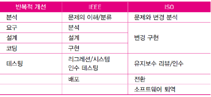 - 코드의 기능 및 효율성 향상과 사용자의 요구 변화에 따라 시스템의 기능을 변경