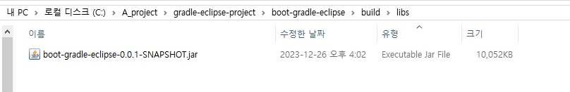 빌드가 완료되면 프로젝트의 build 폴더에서 jar파일을 확인할 수 있습니다.