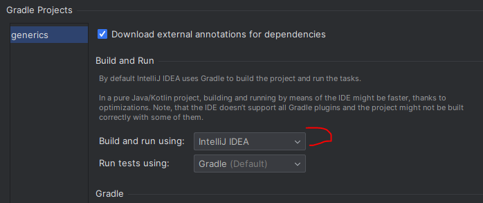 이를 지원하기 위해 InteljiJ IDEA 설정의 gradle로 빌드하도록 아래처럼 설정변경 해주면 한글깨짐이 해결되었습니다.