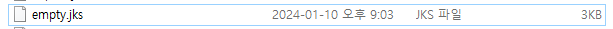 이제 파일 확장자를 넣어 저장하면 빈 jks 파일이 생성완료됩니다.