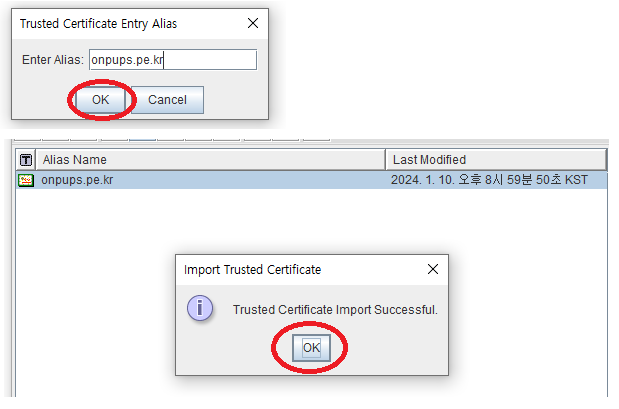 이런식으로 프로그램이 실행되며, jks를 만들거나 불러와서 수정할 수 있습니다.