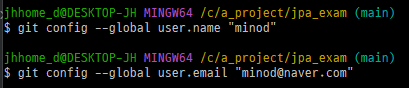git의 global 계정과 이메일 주소를 설정해둡니다.