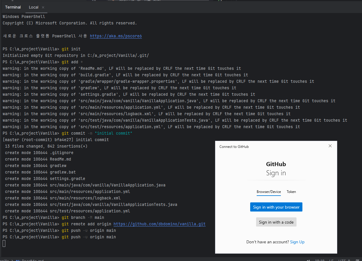git init git 저장소 생성하기 (생성, 브랜치 확인, push 까지의 과정 포함, .git 폴더 생성)
