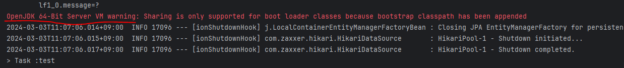 openjdk에서 클래스 로딩 시 Class Data Sharing(CDS) 기능을 사용하면 발생합니다. 오류는 경고 메시지이며, 어플리케이션에 직접적인 영향을 주지는 않습니다.