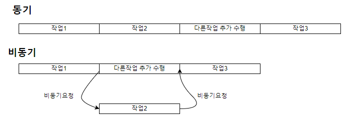 동기는 다른작업 추가 수행 을 하려면 작업2가 끝난 뒤에 해야 하지만,