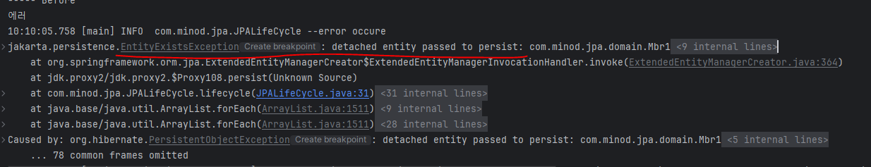 Mbr1 소스에서 Mbr1 관련해서 엔티티가 이미 만들어져 더 생성할 수 없다는 에러가 나왔었습니다.