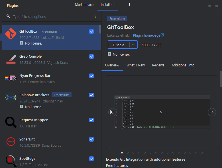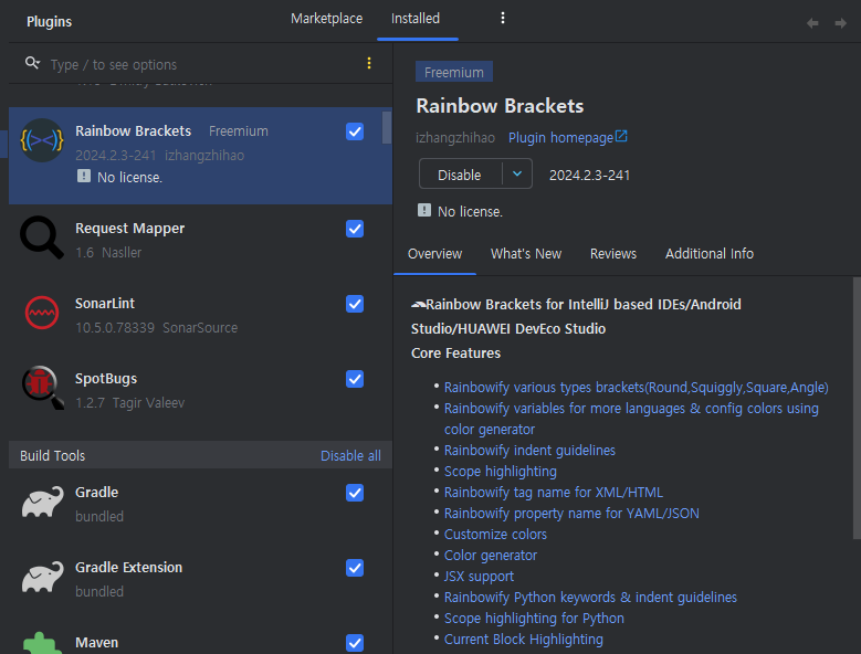 인텔리제이로 개발하다보니 플러그인을 설치해서 사용하는 편입니다.
