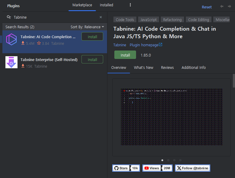 코드 자동완성 도구, 추천 코드를 표시해주며, 선택해서 자동완성 가능하다.