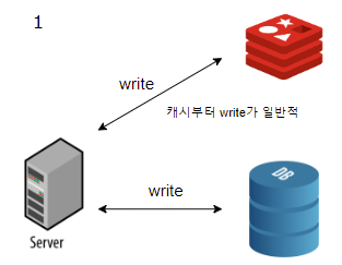 쓰기 지연 시간이 증가하더라도 데이터 갱신을 빠르게 하기 위해 캐시에 먼저 데이터를 쓰고 이후 DB에 쓰는 방식을 주로 사용한다고 합니다.(DB먼저쓰더라도 어짜피 캐시에도 적용할 부분이며, 쓰기 지연이 증가하더라도 읽기는 캐시부터 읽는다면, 결과가 빨리 반영되도록 할 수 있기 때문)