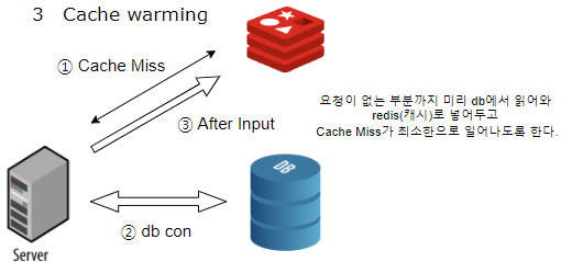 이럴 때에는 미리 DB에서 캐시로 데이터를 밀어 넣어주는 작업을 할 수 있는데. 이를 cache warming이라고 합다.