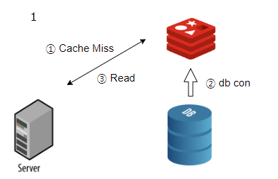 캐시 미스가 발생한 경우 DB에서 데이터를 가져와 캐시에 넣고, 캐시에서 어플리케이션 으로 값을 받아옵니다.