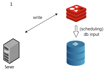 DB에 쓰기하는 방식을 취할 수도 있으나, 여기에선 메모리에만 올려뒀다가 배치처리 하는 것을 말합니다.