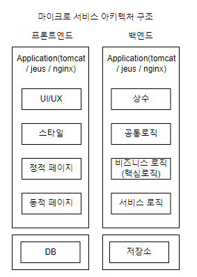 아주 단순한 예시를 보면, 프론트 서버와 백엔드 서버가 분리된 것도 마이크로 서비스 아키텍처 구조를 따른 것이라고 합니다.